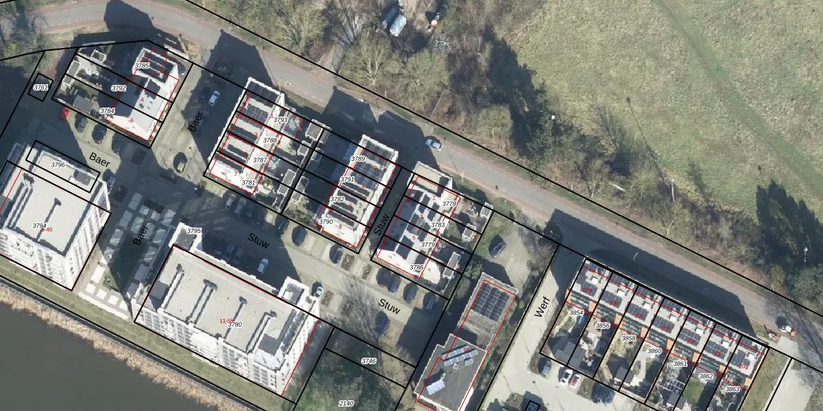 Het perceel waarop Stuw 3 staat heeft een oppervlakte van 116 m². Dit is een middelgroot perceel. De perceeloppervlakte wordt geregistreerd door het Kadaster. Gedetailleerde informatie over de maten van dit perceel kunt u vinden in het rapport Kadastrale kaart met maatvoering van Stuw 3.