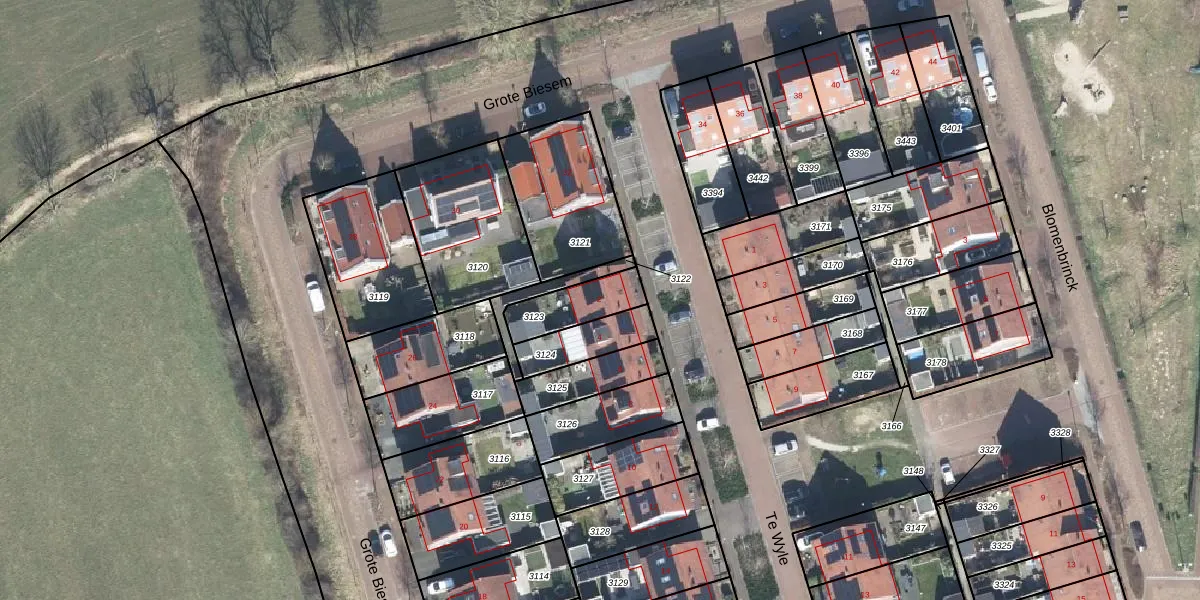 Het perceel waarop Te Wyle 2 staat heeft een oppervlakte van 152 m². Dit is een middelgroot perceel. De perceeloppervlakte wordt geregistreerd door het Kadaster. Gedetailleerde informatie over de maten van dit perceel kunt u vinden in het rapport Kadastrale kaart met maatvoering van Te Wyle 2.