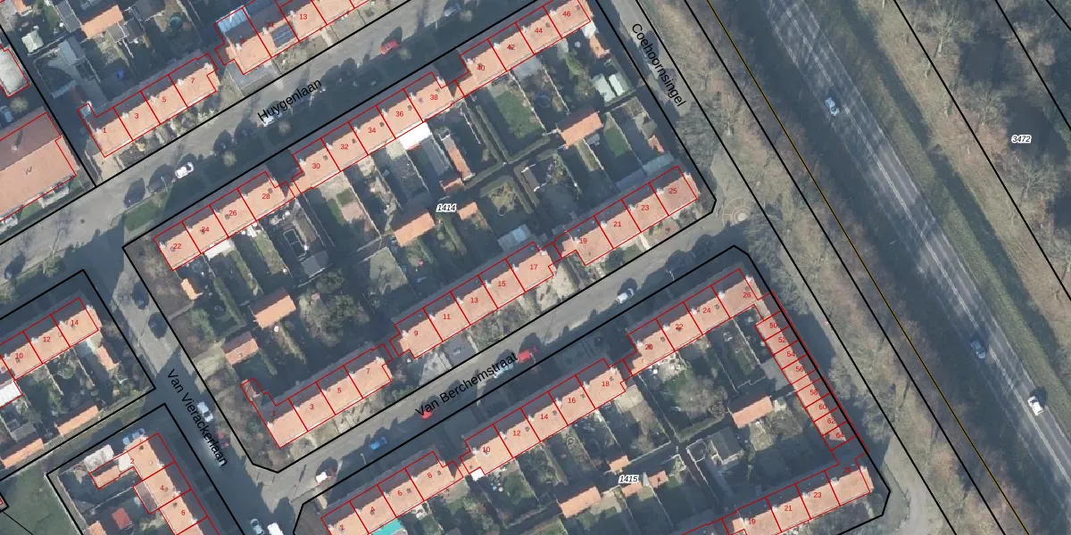 Het perceel waarop Van Berchemstraat 17 staat heeft een oppervlakte van 4982 m². Dit is een zeer groot perceel. De perceeloppervlakte wordt geregistreerd door het Kadaster. Gedetailleerde informatie over de maten van dit perceel kunt u vinden in het rapport Kadastrale kaart met maatvoering van Van Berchemstraat 17.