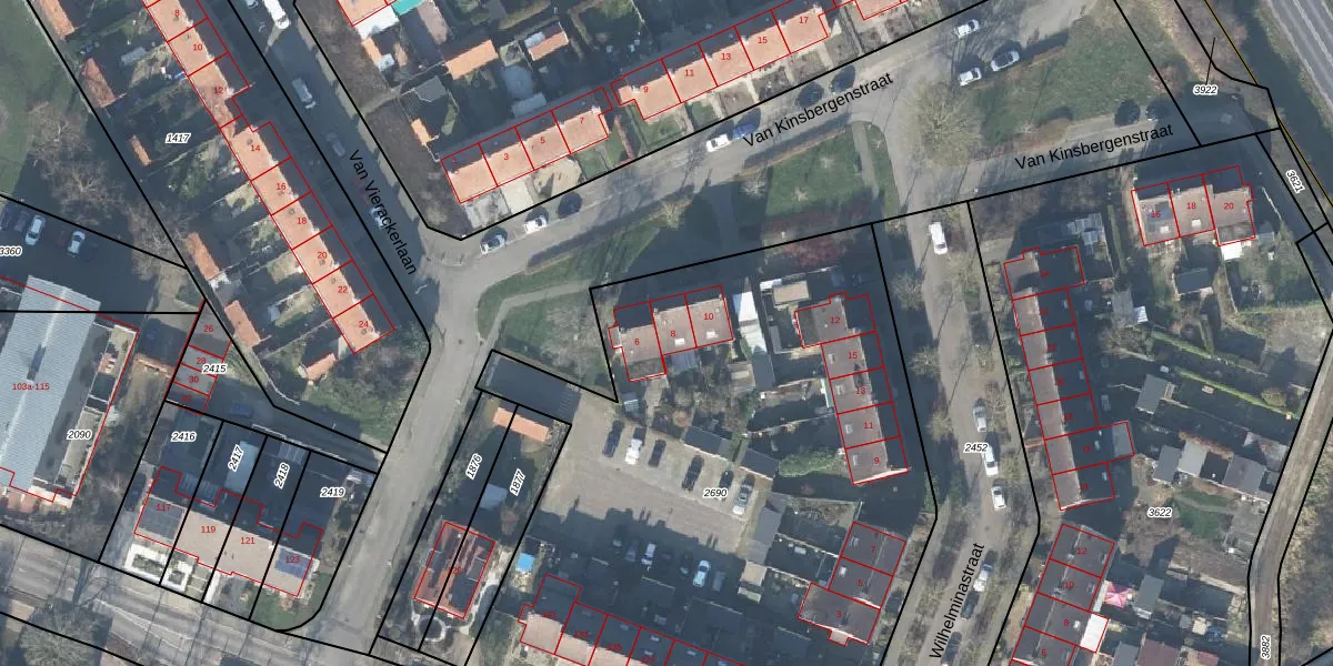 Het perceel waarop Van Kinsbergenstraat 8 staat heeft een oppervlakte van 3906 m². Dit is een zeer groot perceel. De perceeloppervlakte wordt geregistreerd door het Kadaster. Gedetailleerde informatie over de maten van dit perceel kunt u vinden in het rapport Kadastrale kaart met maatvoering van Van Kinsbergenstraat 8.