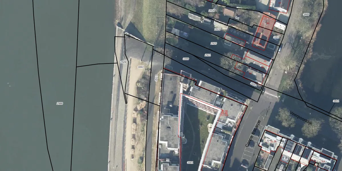 Het perceel waarop Veerpoortdijk 35 staat heeft een oppervlakte van 3626 m². Dit is een zeer groot perceel. De perceeloppervlakte wordt geregistreerd door het Kadaster. Gedetailleerde informatie over de maten van dit perceel kunt u vinden in het rapport Kadastrale kaart met maatvoering van Veerpoortdijk 35.