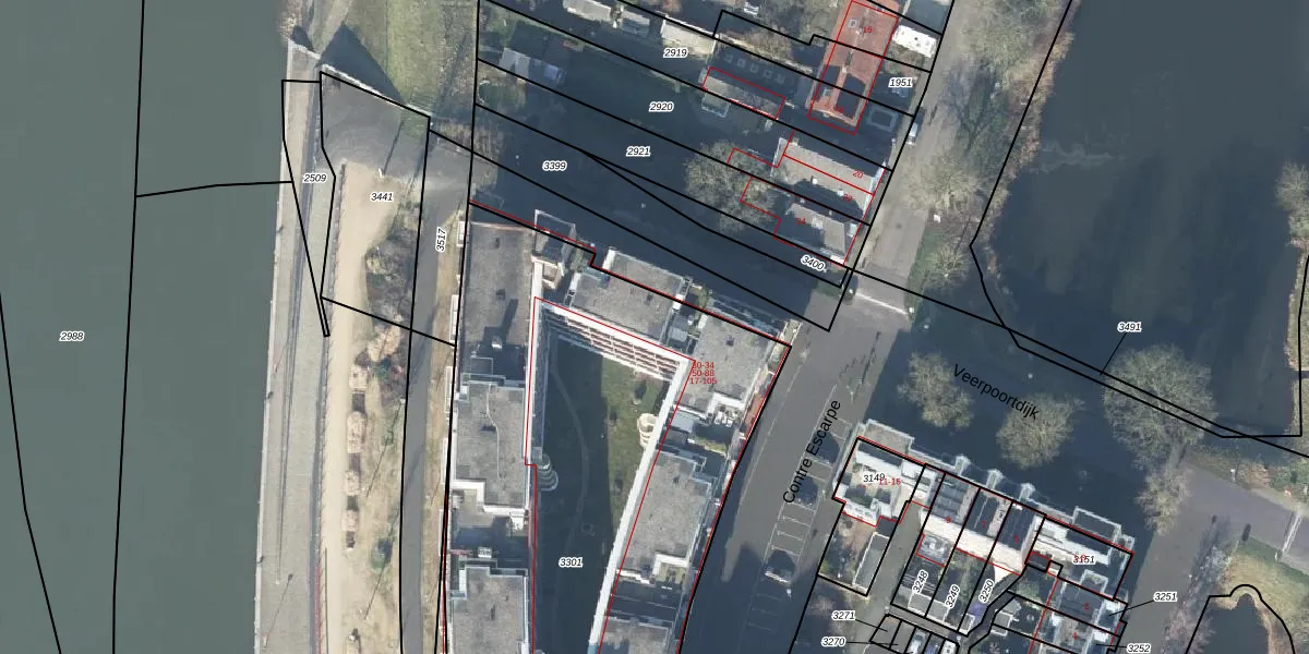 Het perceel waarop Veerpoortdijk 77 staat heeft een oppervlakte van 3626 m². Dit is een zeer groot perceel. De perceeloppervlakte wordt geregistreerd door het Kadaster. Gedetailleerde informatie over de maten van dit perceel kunt u vinden in het rapport Kadastrale kaart met maatvoering van Veerpoortdijk 77.