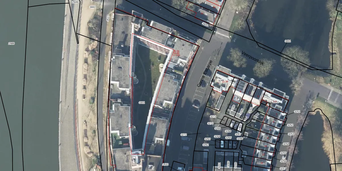 Het perceel waarop Veerpoortdijk 83 staat heeft een oppervlakte van 3626 m². Dit is een zeer groot perceel. De perceeloppervlakte wordt geregistreerd door het Kadaster. Gedetailleerde informatie over de maten van dit perceel kunt u vinden in het rapport Kadastrale kaart met maatvoering van Veerpoortdijk 83.