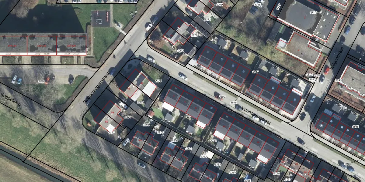 Het perceel waarop Vuurdoornstraat 2 staat heeft een oppervlakte van 1850 m². Dit is een zeer groot perceel. De perceeloppervlakte wordt geregistreerd door het Kadaster. Gedetailleerde informatie over de maten van dit perceel kunt u vinden in het rapport Kadastrale kaart met maatvoering van Vuurdoornstraat 2.