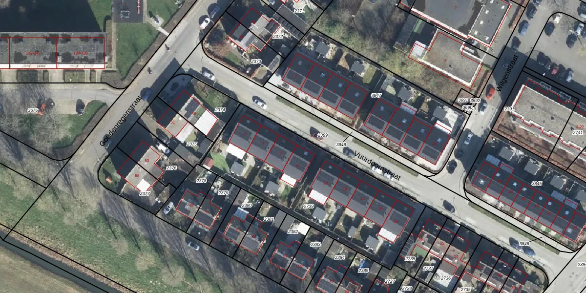 Het perceel waarop Vuurdoornstraat 6 staat heeft een oppervlakte van 1850 m². Dit is een zeer groot perceel. De perceeloppervlakte wordt geregistreerd door het Kadaster. Gedetailleerde informatie over de maten van dit perceel kunt u vinden in het rapport Kadastrale kaart met maatvoering van Vuurdoornstraat 6.