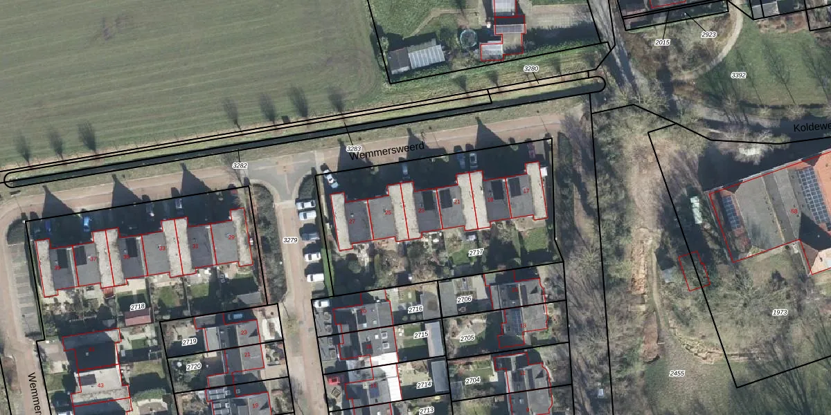 Het perceel waarop Wemmersweerd 23 staat heeft een oppervlakte van 1658 m². Dit is een zeer groot perceel. De perceeloppervlakte wordt geregistreerd door het Kadaster. Gedetailleerde informatie over de maten van dit perceel kunt u vinden in het rapport Kadastrale kaart met maatvoering van Wemmersweerd 23.