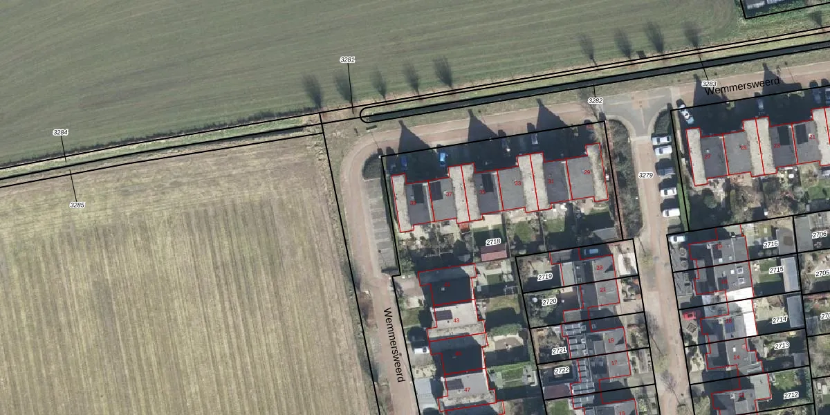Het perceel waarop Wemmersweerd 39 staat heeft een oppervlakte van 5247 m². Dit is een zeer groot perceel. De perceeloppervlakte wordt geregistreerd door het Kadaster. Gedetailleerde informatie over de maten van dit perceel kunt u vinden in het rapport Kadastrale kaart met maatvoering van Wemmersweerd 39.