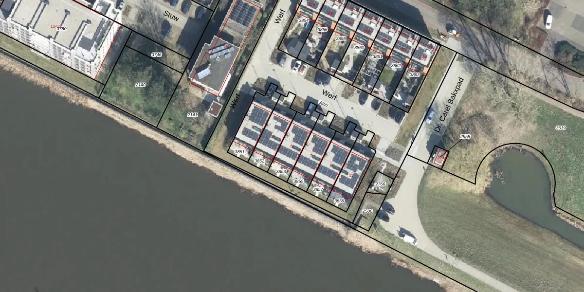 Het perceel waarop Werf 5 staat heeft een oppervlakte van 193 m². Dit is een middelgroot perceel. De perceeloppervlakte wordt geregistreerd door het Kadaster. Gedetailleerde informatie over de maten van dit perceel kunt u vinden in het rapport Kadastrale kaart met maatvoering van Werf 5.