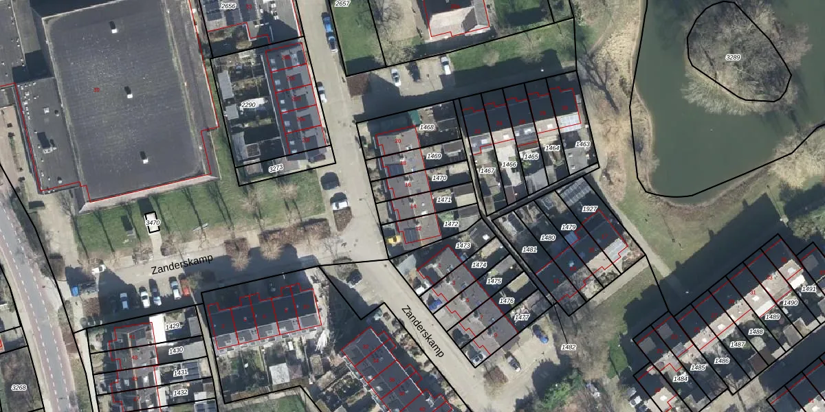 Gebruik de zoekbalk of klik op een perceel voor informatie over de adressen binnen dit perceel.