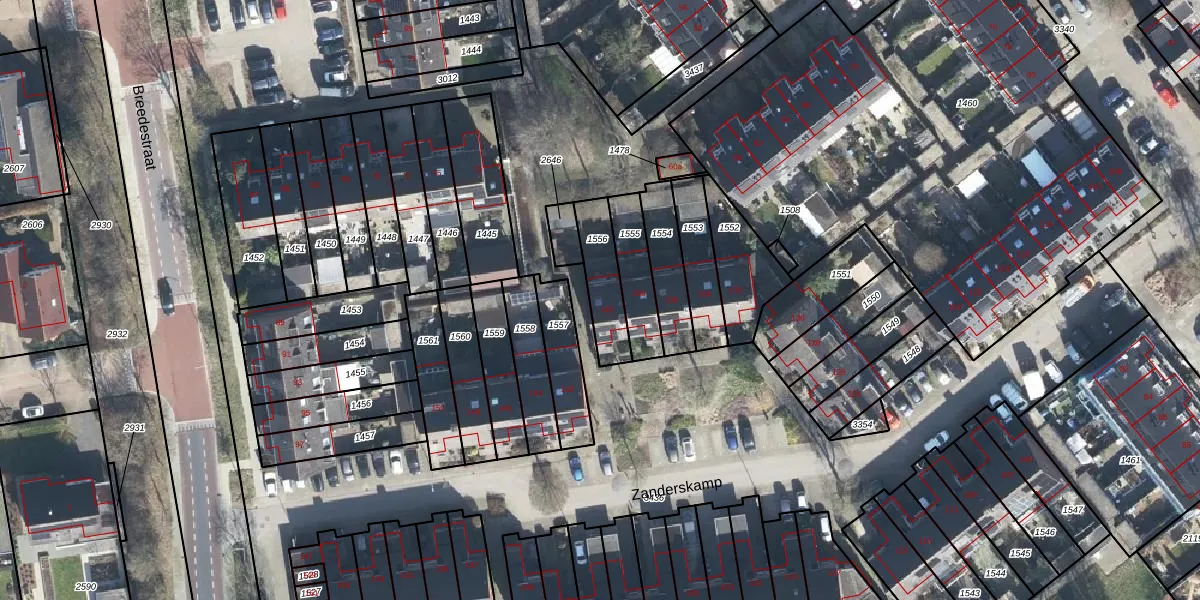 Gebruik de zoekbalk of klik op een perceel voor informatie over de adressen binnen dit perceel.
