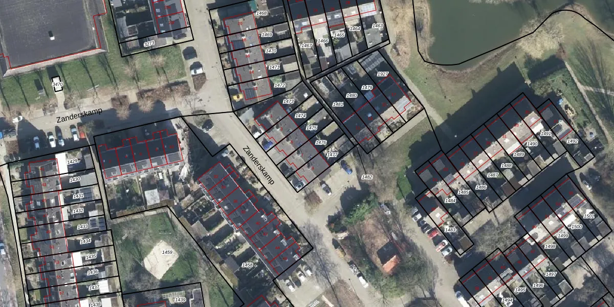 Gebruik de zoekbalk of klik op een perceel voor informatie over de adressen binnen dit perceel.