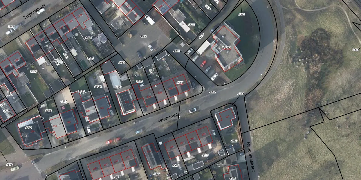 Het perceel waarop Asterstraat 116 staat heeft een oppervlakte van 435 m². Dit is een groot perceel. De perceeloppervlakte wordt geregistreerd door het Kadaster. Gedetailleerde informatie over de maten van dit perceel kunt u vinden in het rapport Kadastrale kaart met maatvoering van Asterstraat 116.