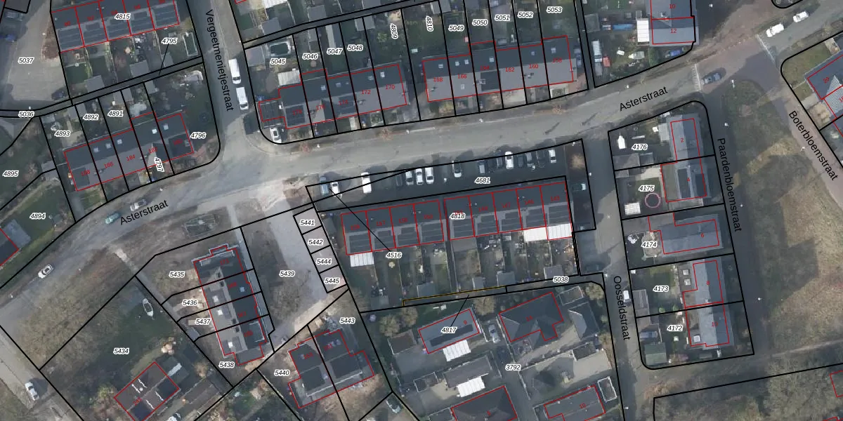 Het perceel waarop Asterstraat 153 staat heeft een oppervlakte van 1369 m². Dit is een zeer groot perceel. De perceeloppervlakte wordt geregistreerd door het Kadaster. Gedetailleerde informatie over de maten van dit perceel kunt u vinden in het rapport Kadastrale kaart met maatvoering van Asterstraat 153.