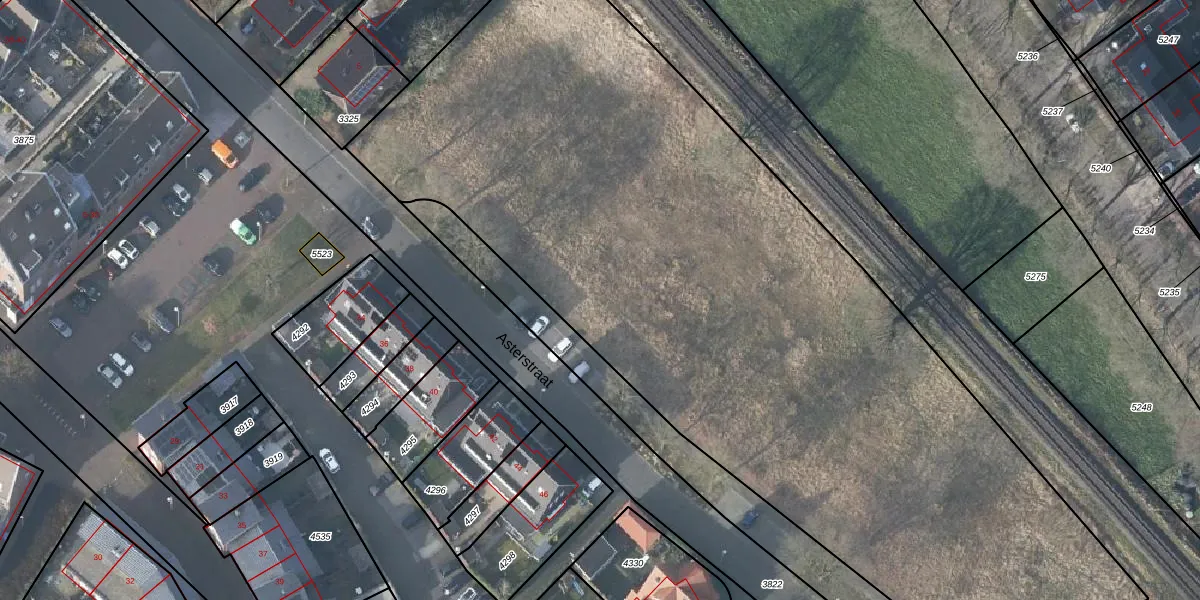 Het perceel waarop Asterstraat 25 staat heeft een oppervlakte van 7560 m². Dit is een zeer groot perceel. De perceeloppervlakte wordt geregistreerd door het Kadaster. Gedetailleerde informatie over de maten van dit perceel kunt u vinden in het rapport Kadastrale kaart met maatvoering van Asterstraat 25.
