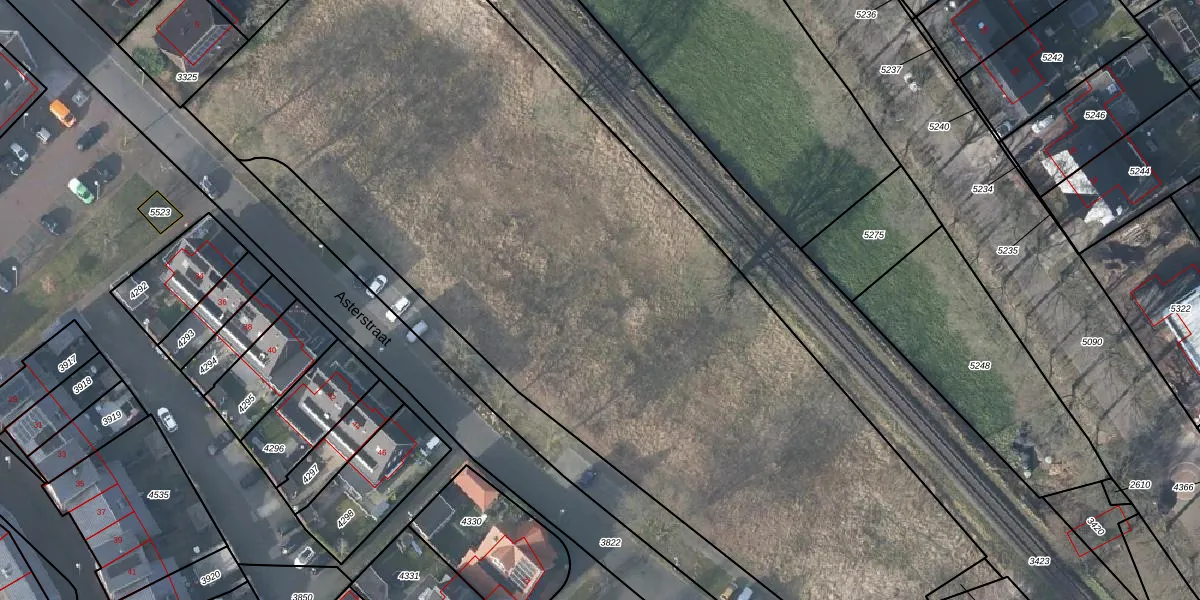 Het perceel waarop Asterstraat 33 staat heeft een oppervlakte van 7560 m². Dit is een zeer groot perceel. De perceeloppervlakte wordt geregistreerd door het Kadaster. Gedetailleerde informatie over de maten van dit perceel kunt u vinden in het rapport Kadastrale kaart met maatvoering van Asterstraat 33.