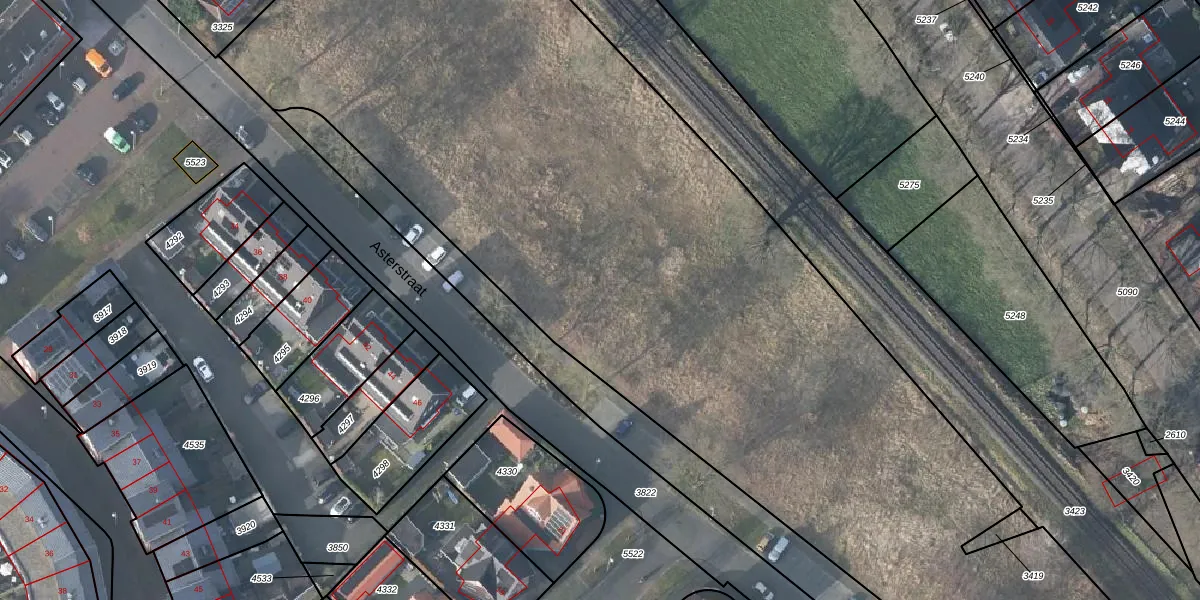 Het perceel waarop Asterstraat 37 staat heeft een oppervlakte van 7560 m². Dit is een zeer groot perceel. De perceeloppervlakte wordt geregistreerd door het Kadaster. Gedetailleerde informatie over de maten van dit perceel kunt u vinden in het rapport Kadastrale kaart met maatvoering van Asterstraat 37.