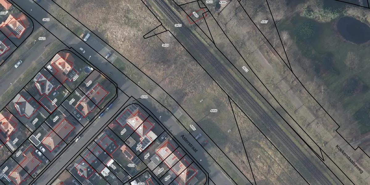 Het perceel waarop Asterstraat 59 staat heeft een oppervlakte van 7560 m². Dit is een zeer groot perceel. De perceeloppervlakte wordt geregistreerd door het Kadaster. Gedetailleerde informatie over de maten van dit perceel kunt u vinden in het rapport Kadastrale kaart met maatvoering van Asterstraat 59.