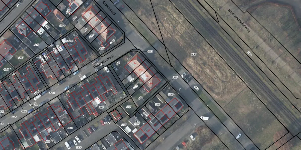 Het perceel waarop Asterstraat 96 staat heeft een oppervlakte van 135 m². Dit is een middelgroot perceel. De perceeloppervlakte wordt geregistreerd door het Kadaster. Gedetailleerde informatie over de maten van dit perceel kunt u vinden in het rapport Kadastrale kaart met maatvoering van Asterstraat 96.
