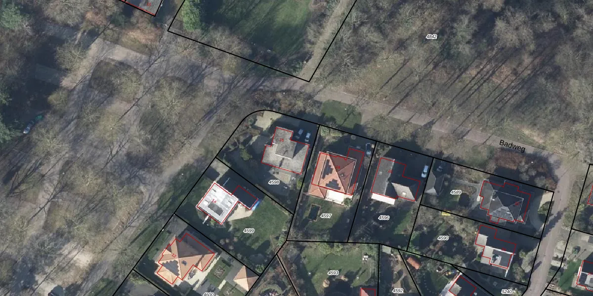 Het perceel waarop Badweg 16 staat heeft een oppervlakte van 714 m². Dit is een groot perceel. De perceeloppervlakte wordt geregistreerd door het Kadaster. Gedetailleerde informatie over de maten van dit perceel kunt u vinden in het rapport Kadastrale kaart met maatvoering van Badweg 16.