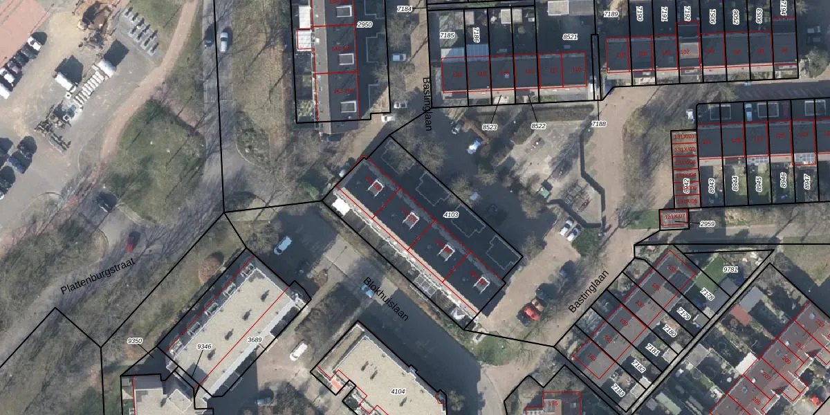 Het perceel waarop Bastinglaan 172 staat heeft een oppervlakte van 1025 m². Dit is een zeer groot perceel. De perceeloppervlakte wordt geregistreerd door het Kadaster. Gedetailleerde informatie over de maten van dit perceel kunt u vinden in het rapport Kadastrale kaart met maatvoering van Bastinglaan 172.