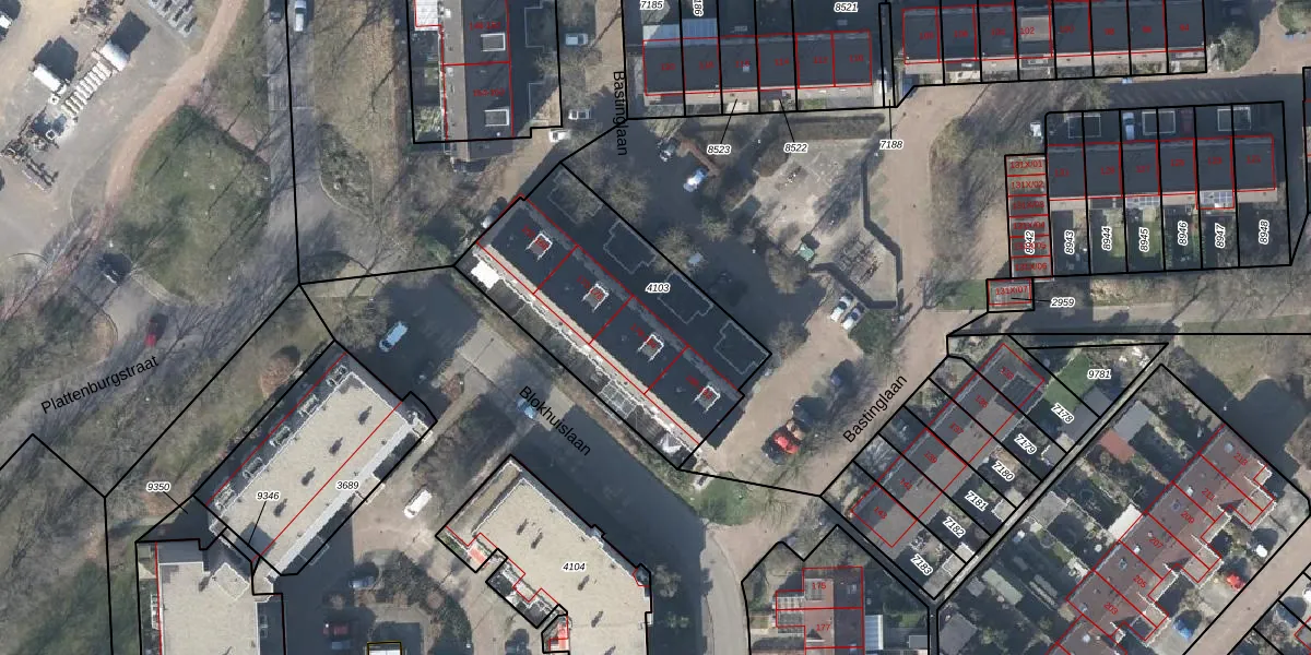 Het perceel waarop Bastinglaan 180 staat heeft een oppervlakte van 1025 m². Dit is een zeer groot perceel. De perceeloppervlakte wordt geregistreerd door het Kadaster. Gedetailleerde informatie over de maten van dit perceel kunt u vinden in het rapport Kadastrale kaart met maatvoering van Bastinglaan 180.
