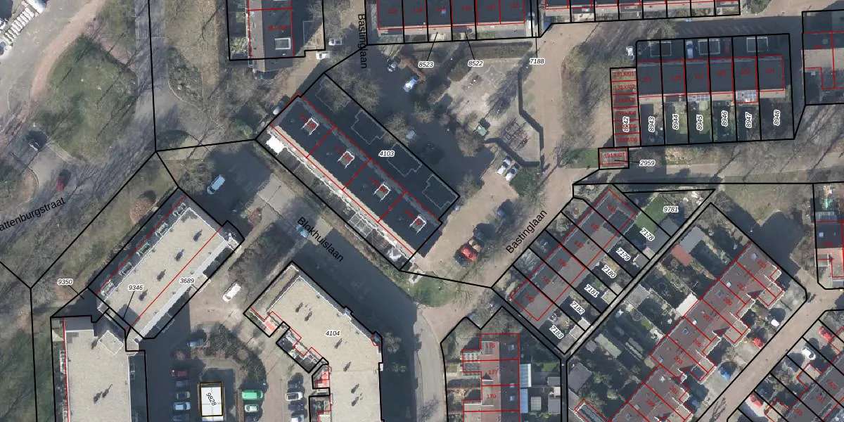 Het perceel waarop Bastinglaan 186 staat heeft een oppervlakte van 1025 m². Dit is een zeer groot perceel. De perceeloppervlakte wordt geregistreerd door het Kadaster. Gedetailleerde informatie over de maten van dit perceel kunt u vinden in het rapport Kadastrale kaart met maatvoering van Bastinglaan 186.