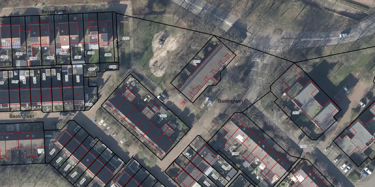 Het perceel waarop Bastinglaan 24 staat heeft een oppervlakte van 567 m². Dit is een groot perceel. De perceeloppervlakte wordt geregistreerd door het Kadaster. Gedetailleerde informatie over de maten van dit perceel kunt u vinden in het rapport Kadastrale kaart met maatvoering van Bastinglaan 24.