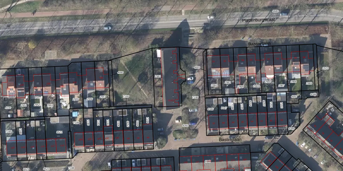 Het perceel waarop Bastinglaan 80 staat heeft een oppervlakte van 567 m². Dit is een groot perceel. De perceeloppervlakte wordt geregistreerd door het Kadaster. Gedetailleerde informatie over de maten van dit perceel kunt u vinden in het rapport Kadastrale kaart met maatvoering van Bastinglaan 80.