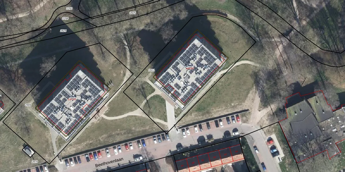 Het perceel waarop Beethovenlaan 263 staat heeft een oppervlakte van 920 m². Dit is een groot perceel. De perceeloppervlakte wordt geregistreerd door het Kadaster. Gedetailleerde informatie over de maten van dit perceel kunt u vinden in het rapport Kadastrale kaart met maatvoering van Beethovenlaan 263.