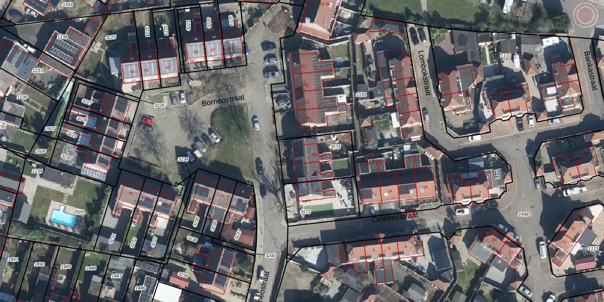 Het perceel waarop Borneostraat 18 staat heeft een oppervlakte van 360 m². Dit is een groot perceel. De perceeloppervlakte wordt geregistreerd door het Kadaster. Gedetailleerde informatie over de maten van dit perceel kunt u vinden in het rapport Kadastrale kaart met maatvoering van Borneostraat 18.