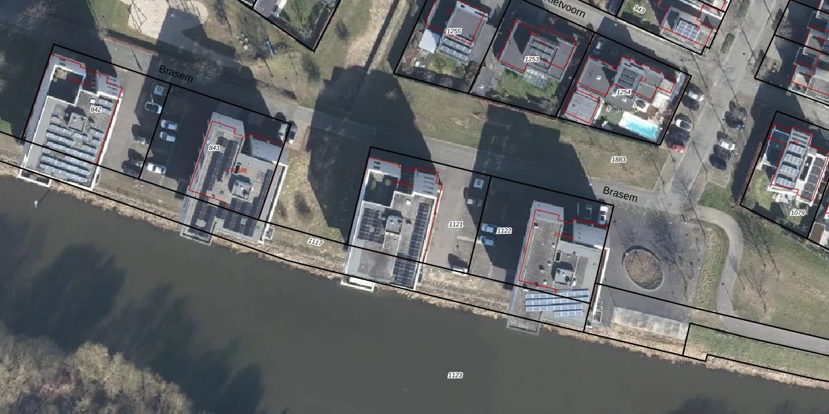 Het perceel waarop Brasem 190 staat heeft een oppervlakte van 727 m². Dit is een groot perceel. De perceeloppervlakte wordt geregistreerd door het Kadaster. Gedetailleerde informatie over de maten van dit perceel kunt u vinden in het rapport Kadastrale kaart met maatvoering van Brasem 190.