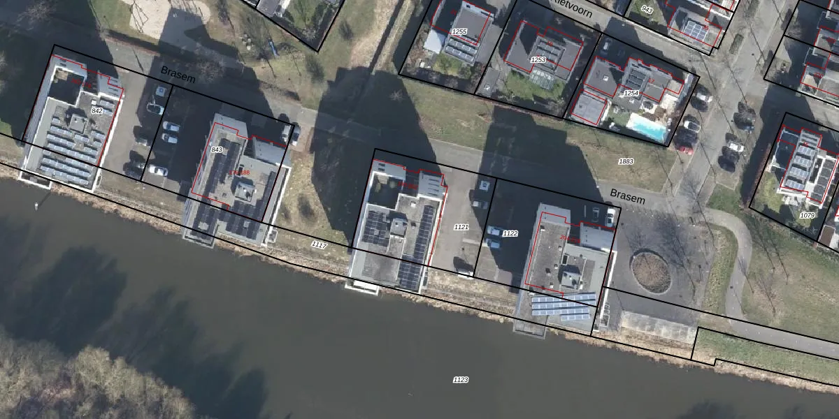 Het perceel waarop Brasem 196 staat heeft een oppervlakte van 727 m². Dit is een groot perceel. De perceeloppervlakte wordt geregistreerd door het Kadaster. Gedetailleerde informatie over de maten van dit perceel kunt u vinden in het rapport Kadastrale kaart met maatvoering van Brasem 196.