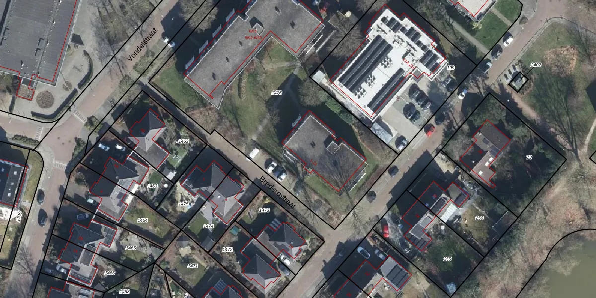Het perceel waarop Brederostraat 21 staat heeft een oppervlakte van 4340 m². Dit is een zeer groot perceel. De perceeloppervlakte wordt geregistreerd door het Kadaster. Gedetailleerde informatie over de maten van dit perceel kunt u vinden in het rapport Kadastrale kaart met maatvoering van Brederostraat 21.