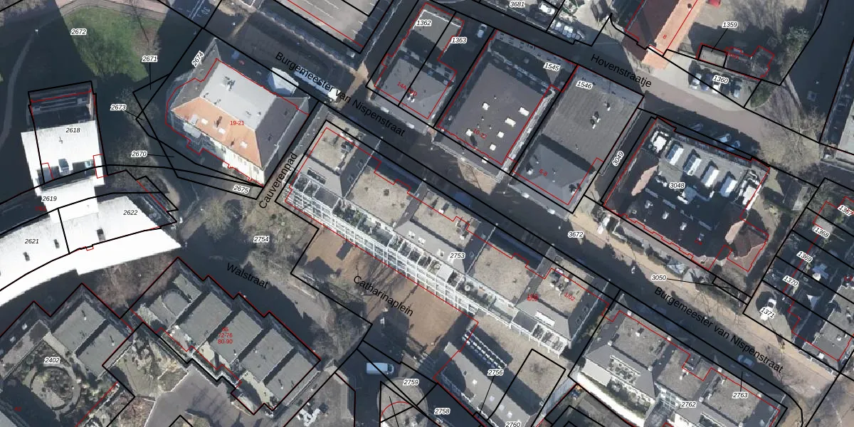 Het perceel waarop Catharinaplein 3-B staat heeft een oppervlakte van 2697 m². Dit is een zeer groot perceel. De perceeloppervlakte wordt geregistreerd door het Kadaster. Gedetailleerde informatie over de maten van dit perceel kunt u vinden in het rapport Kadastrale kaart met maatvoering van Catharinaplein 3-B.