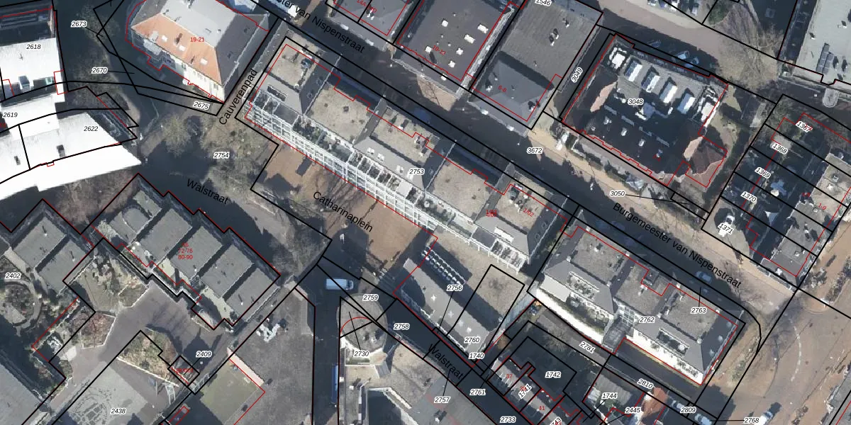 Het perceel waarop Catharinaplein 5 staat heeft een oppervlakte van 2697 m². Dit is een zeer groot perceel. De perceeloppervlakte wordt geregistreerd door het Kadaster. Gedetailleerde informatie over de maten van dit perceel kunt u vinden in het rapport Kadastrale kaart met maatvoering van Catharinaplein 5.