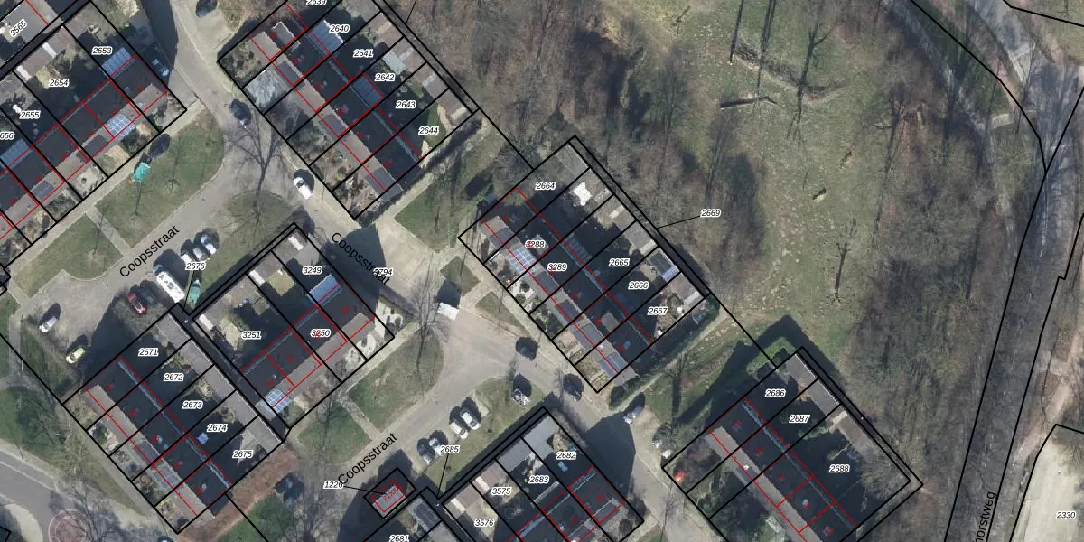 Het perceel waarop Coopsstraat 35 staat heeft een oppervlakte van 166 m². Dit is een middelgroot perceel. De perceeloppervlakte wordt geregistreerd door het Kadaster. Gedetailleerde informatie over de maten van dit perceel kunt u vinden in het rapport Kadastrale kaart met maatvoering van Coopsstraat 35.