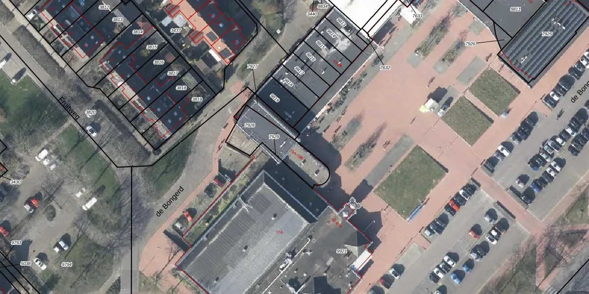 Het perceel waarop de Bongerd 79-A staat heeft een oppervlakte van 355 m². Dit is een groot perceel. De perceeloppervlakte wordt geregistreerd door het Kadaster. Gedetailleerde informatie over de maten van dit perceel kunt u vinden in het rapport Kadastrale kaart met maatvoering van de Bongerd 79-A.