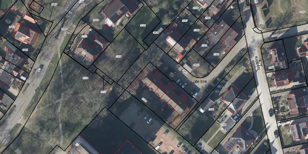Het perceel waarop de Enk 21 staat heeft een oppervlakte van 975 m². Dit is een groot perceel. De perceeloppervlakte wordt geregistreerd door het Kadaster. Gedetailleerde informatie over de maten van dit perceel kunt u vinden in het rapport Kadastrale kaart met maatvoering van de Enk 21.