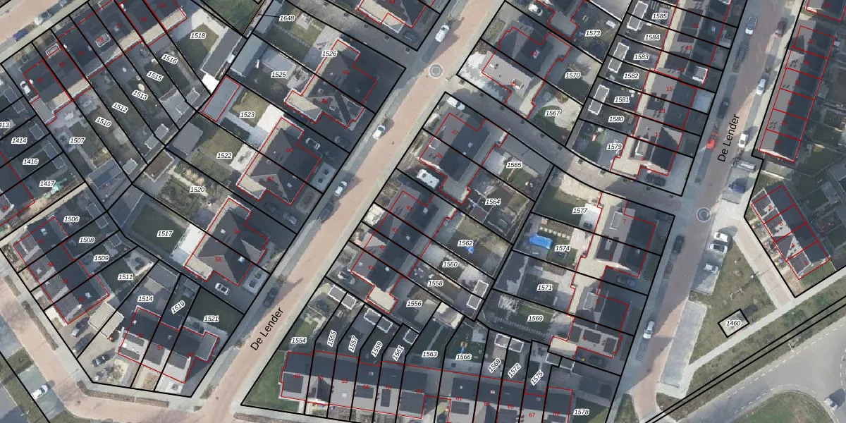 Het perceel waarop De Lender 41 staat heeft een oppervlakte van 319 m². Dit is een groot perceel. De perceeloppervlakte wordt geregistreerd door het Kadaster. Gedetailleerde informatie over de maten van dit perceel kunt u vinden in het rapport Kadastrale kaart met maatvoering van De Lender 41.