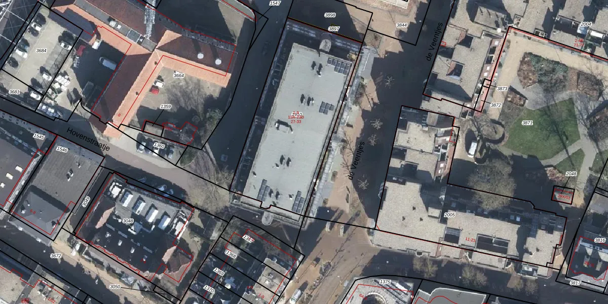 de Veentjes 13-B is gelegen op kadastraal perceel DTC01C1910. Deze kadastrale aanduiding is uniek en wordt gebruikt door het Kadaster om eigendomsrechten en andere zakelijke rechten vast te leggen. Het perceel maakt onderdeel uit van de kadastrale gemeente Ambt-Doetinchem.