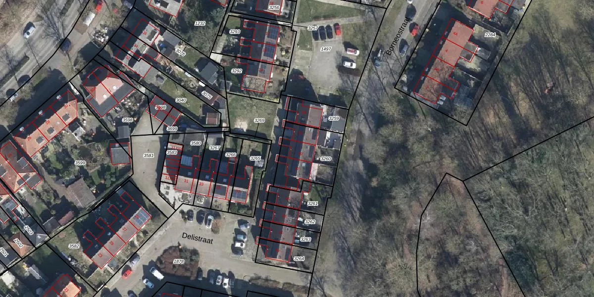 Het perceel waarop Delistraat 49 staat heeft een oppervlakte van 404 m². Dit is een groot perceel. De perceeloppervlakte wordt geregistreerd door het Kadaster. Gedetailleerde informatie over de maten van dit perceel kunt u vinden in het rapport Kadastrale kaart met maatvoering van Delistraat 49.