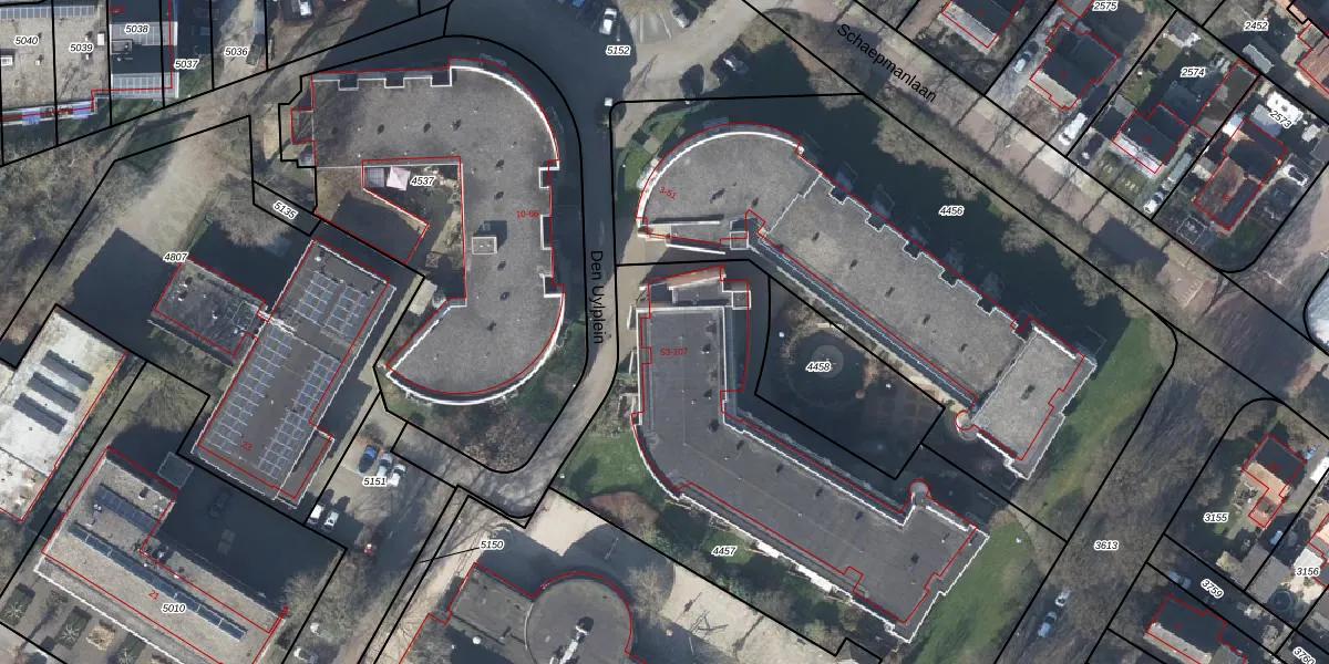Het perceel waarop Den Uylplein 101 staat heeft een oppervlakte van 2418 m². Dit is een zeer groot perceel. De perceeloppervlakte wordt geregistreerd door het Kadaster. Gedetailleerde informatie over de maten van dit perceel kunt u vinden in het rapport Kadastrale kaart met maatvoering van Den Uylplein 101.