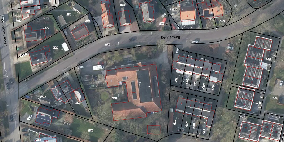 Dennenweg 6 is gelegen op kadastraal perceel DTC01L2311. Deze kadastrale aanduiding is uniek en wordt gebruikt door het Kadaster om eigendomsrechten en andere zakelijke rechten vast te leggen. Het perceel maakt onderdeel uit van de kadastrale gemeente Ambt-Doetinchem.