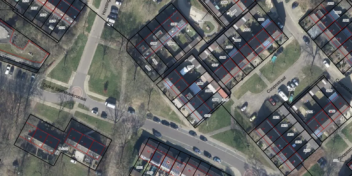 Het perceel waarop Duval Slothouwerstraat 53 staat heeft een oppervlakte van 346 m². Dit is een groot perceel. De perceeloppervlakte wordt geregistreerd door het Kadaster. Gedetailleerde informatie over de maten van dit perceel kunt u vinden in het rapport Kadastrale kaart met maatvoering van Duval Slothouwerstraat 53.