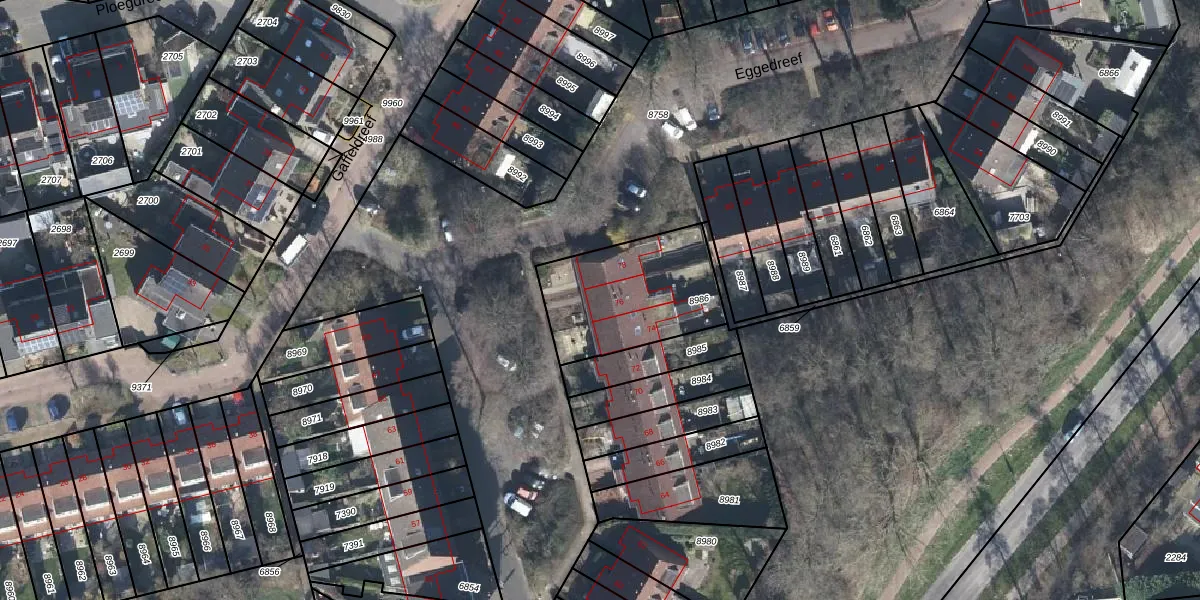 Het perceel waarop Eggedreef 76 staat heeft een oppervlakte van 495 m². Dit is een groot perceel. De perceeloppervlakte wordt geregistreerd door het Kadaster. Gedetailleerde informatie over de maten van dit perceel kunt u vinden in het rapport Kadastrale kaart met maatvoering van Eggedreef 76.