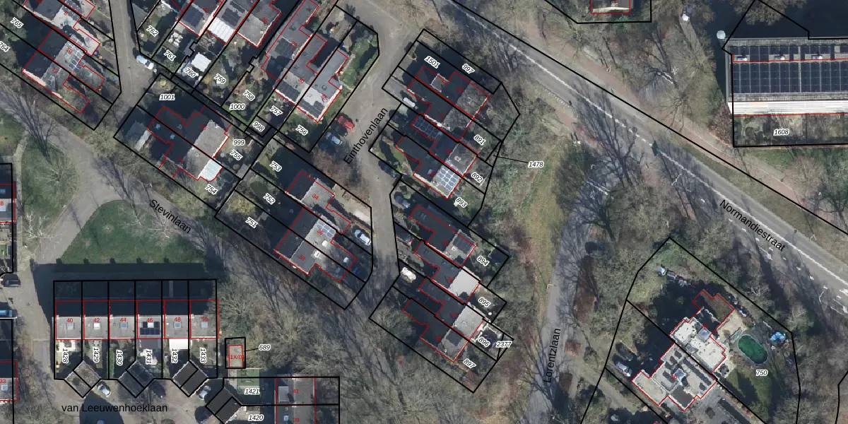 Het perceel waarop Einthovenlaan 33 staat heeft een oppervlakte van 275 m². Dit is een middelgroot perceel. De perceeloppervlakte wordt geregistreerd door het Kadaster. Gedetailleerde informatie over de maten van dit perceel kunt u vinden in het rapport Kadastrale kaart met maatvoering van Einthovenlaan 33.