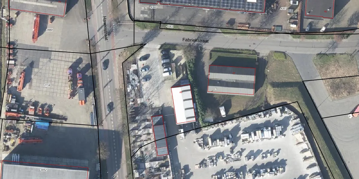 Het perceel waarop Fabriekstraat 49 staat heeft een oppervlakte van 12,0 ha. Dit is een zeer groot perceel. De perceeloppervlakte wordt geregistreerd door het Kadaster. Gedetailleerde informatie over de maten van dit perceel kunt u vinden in het rapport Kadastrale kaart met maatvoering van Fabriekstraat 49.