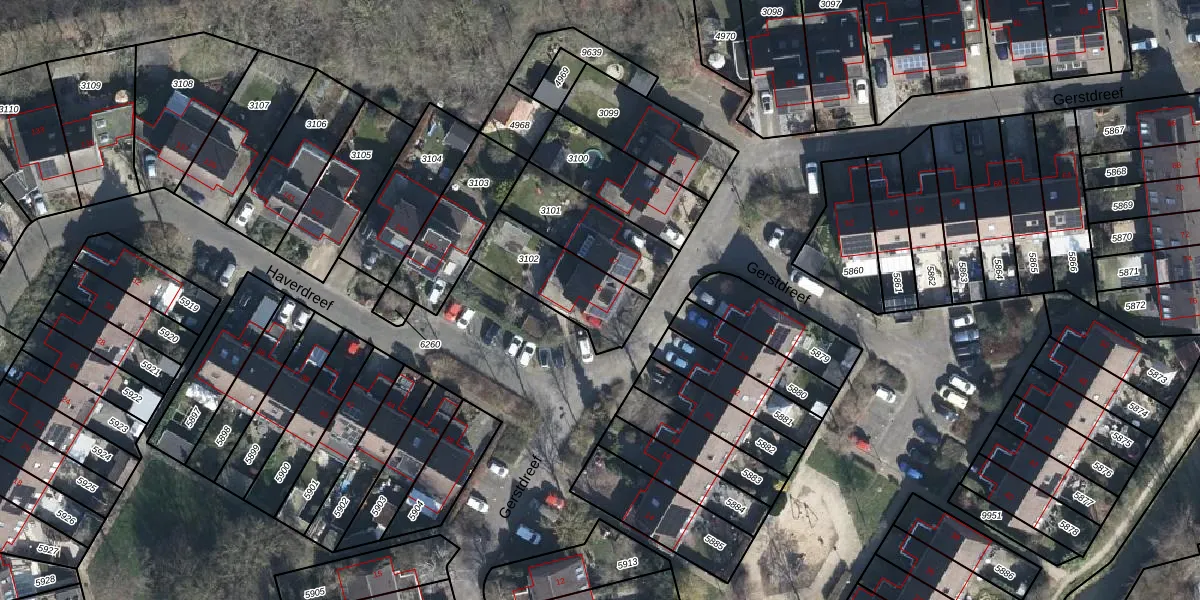 Het perceel waarop Gerstdreef 45 staat heeft een oppervlakte van 292 m². Dit is een middelgroot perceel. De perceeloppervlakte wordt geregistreerd door het Kadaster. Gedetailleerde informatie over de maten van dit perceel kunt u vinden in het rapport Kadastrale kaart met maatvoering van Gerstdreef 45.