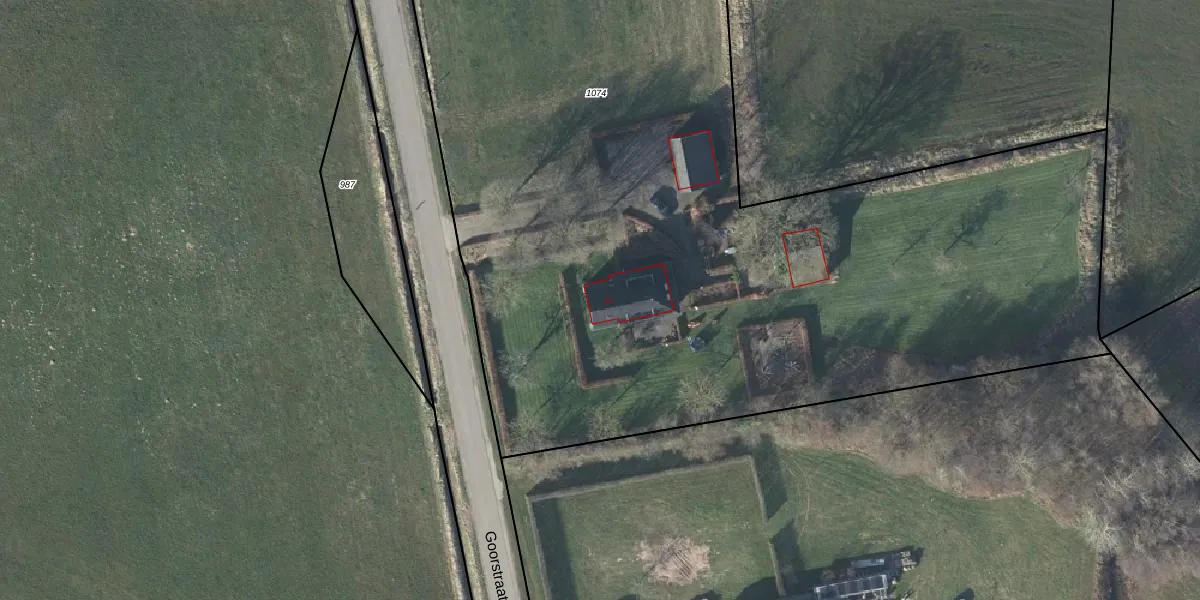 Het perceel waarop Goorstraat 21 staat heeft een oppervlakte van 8440 m². Dit is een zeer groot perceel. De perceeloppervlakte wordt geregistreerd door het Kadaster. Gedetailleerde informatie over de maten van dit perceel kunt u vinden in het rapport Kadastrale kaart met maatvoering van Goorstraat 21.