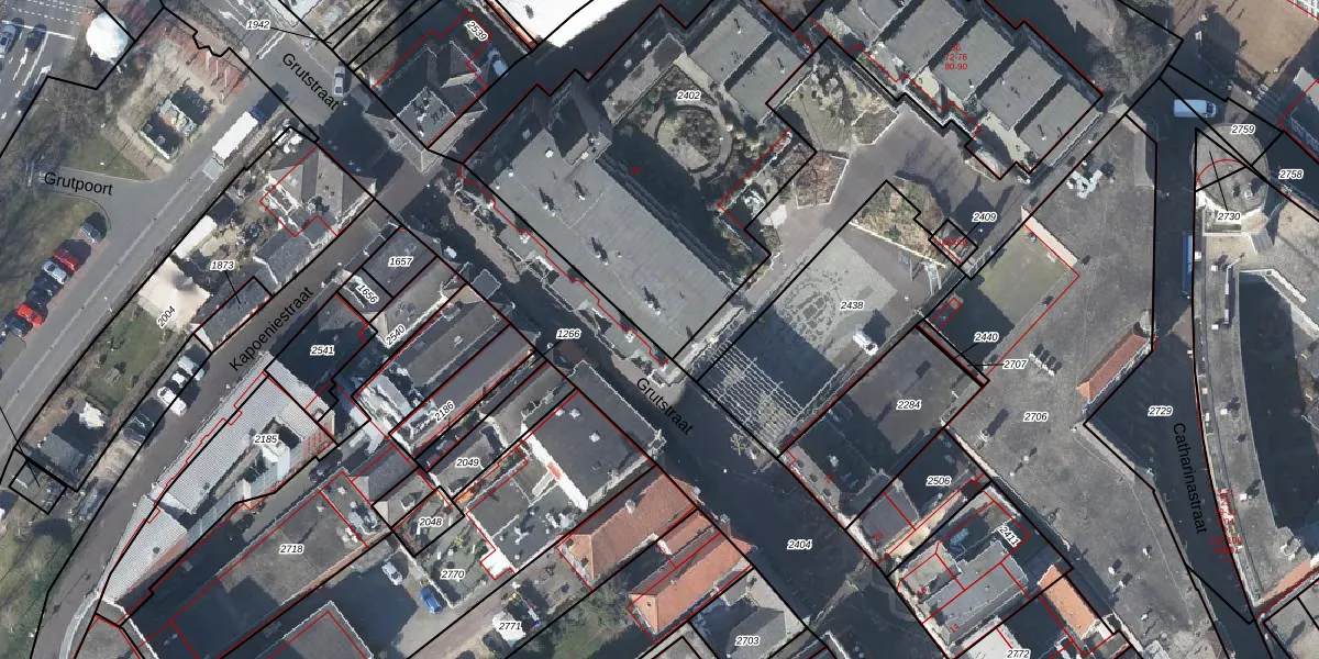 Het perceel waarop Grutstraat 32 staat heeft een oppervlakte van 2420 m². Dit is een zeer groot perceel. De perceeloppervlakte wordt geregistreerd door het Kadaster. Gedetailleerde informatie over de maten van dit perceel kunt u vinden in het rapport Kadastrale kaart met maatvoering van Grutstraat 32.